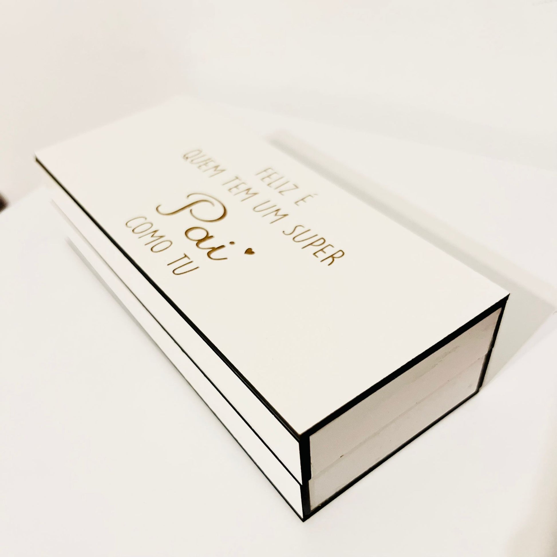 Conjunto composto por caixa, caneta e porta-chaves.
